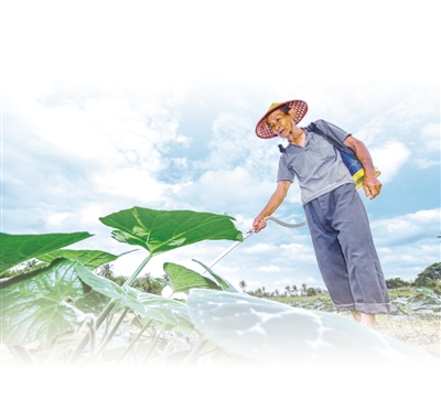 | 3月4日,海南省海口市琼山区绿塘村村民在地里劳作。 |