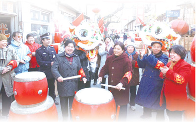 | 2002年11月14日,北京市天坛街道办事处西草市社区居民庆祝十六大胜利闭幕。 |