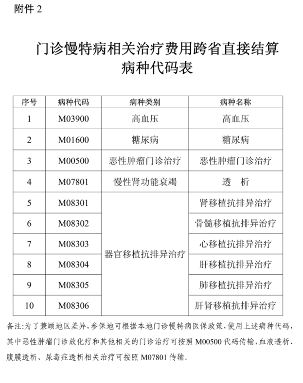 2.门诊慢特病相关治疗费用跨省直接结算病种代码表