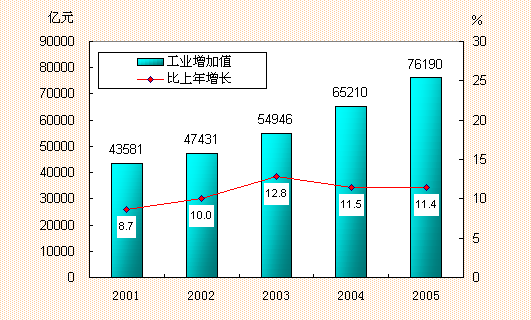 2005年,全国各族人民在党中央、国务院的领导下,以邓小平理论和“三个代表”重要思想为指导,以科学发展观统领经济社会发展全局,认真贯彻落实加强和改善宏观调控的各项政策措施,国民经济和社会发展取得明显成效。经济保持平稳较快增长,重要领域和关键环节的改革有所突破,就业和社会保障工作进一步加强,城乡居民生活不断改善,对外开放继续扩大,各项社会事业得到加强,实现了年初确定的国民经济和社会发展的预期目标,较好地完成了“十五”时期的主要任务,为“十一五”时期经济社会发展奠定了良好基础。但经济结构不合理、增长方式粗放等问题仍比较突出。
